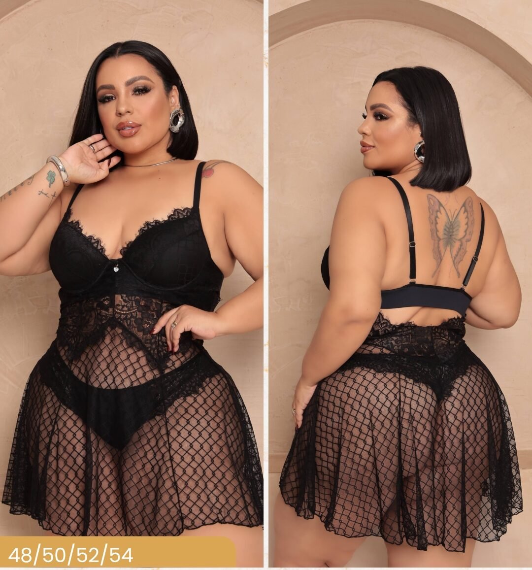 Camisola sensual plus size em tule e renda. Elegância e sedução com o toque de luxo da Samara Store.
